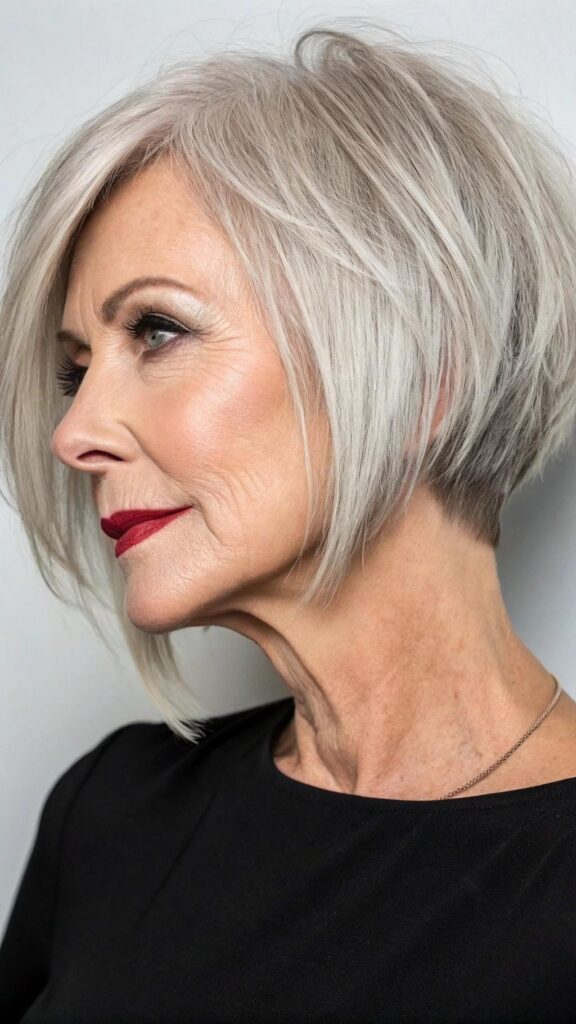 The side-parted bob is a classic and elegant hairstyle for women over 70. It features a deep side part that adds volume and sophistication. This style is perfect for those who want a polished and timeless look.