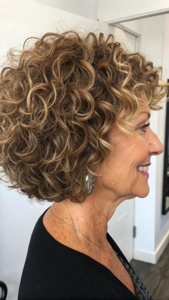 The curly bob is a lively and voluminous hairstyle for women over 70. It’s perfect for those with naturally curly hair or those who want to add bounce to their look. This style is both fun and flattering.