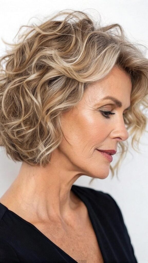 Tousled waves are a great way to add volume and movement to short hair. This hairstyle is relaxed and effortless, making it perfect for women over 70. It’s ideal for both casual and formal occasions.