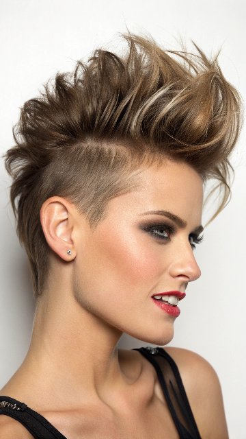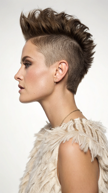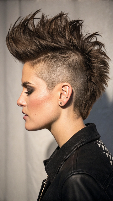 This mohawk stacks layers along the center strip. Layers build punk volume. Sides stay close-cropped.
