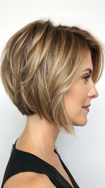 You blow-dry it straight for a sleek effect. Square faces benefit from this design. It stands out in crowds.