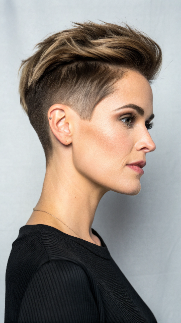 The pixie cut includes short choppy layers on top. These layers create texture and height. Barbers use razors for an edgy finish.