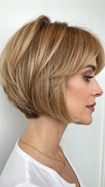 This blunt bob hides subtle layers inside for hidden volume. Layers lift without changing the outline. It stays neat.