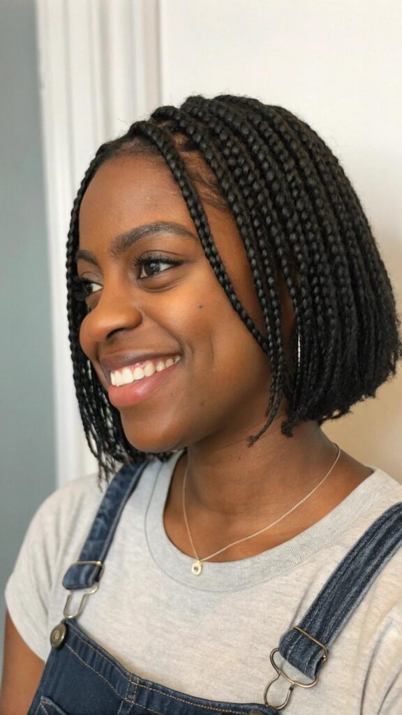 Use a styling gel to keep your braids neat and defined. You can add beads or cuffs for a personalized touch. The braided bob is perfect for protecting your hair while still looking chic.