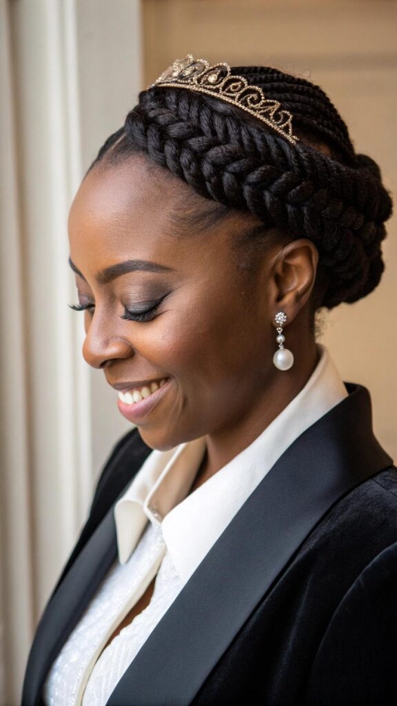 Use a styling gel to keep your braids neat and secure. You can add accessories like beads or cuffs for a personalized touch. The braided crown is perfect for women who want a chic and polished hairstyle.