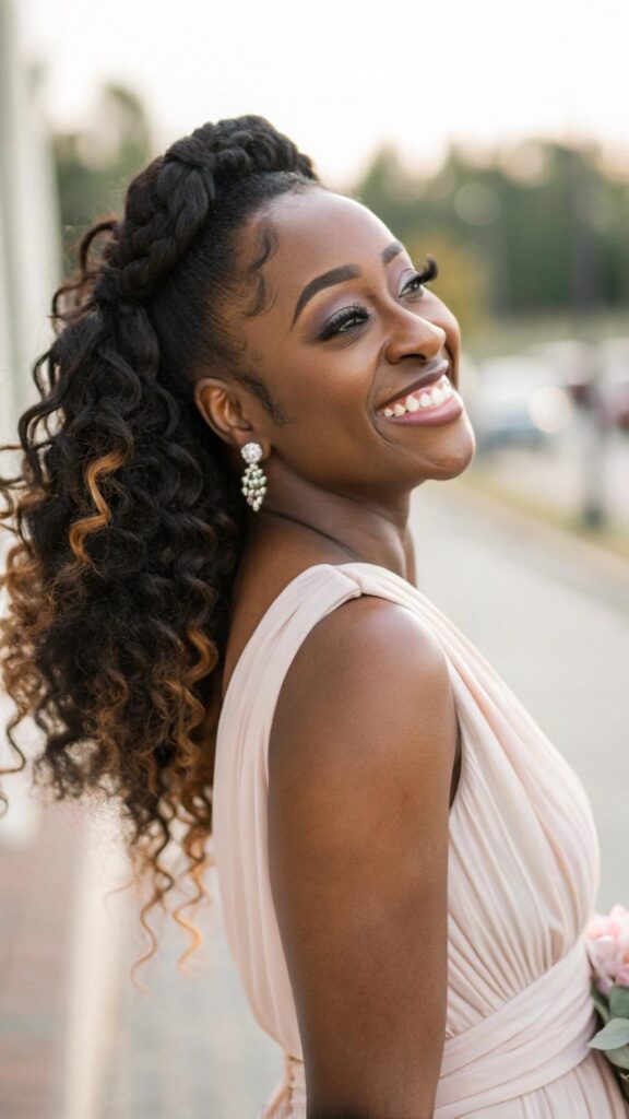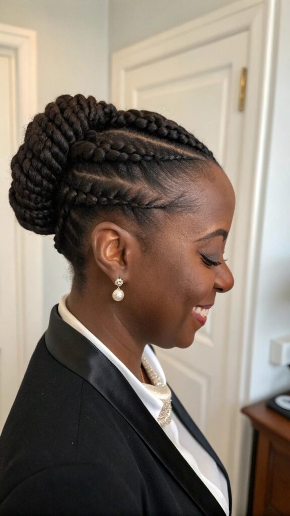 Use a styling gel to keep your braids neat and secure. You can add accessories like beads or cuffs for a personalized touch. The braided updo is perfect for women who want a polished and glamorous hairstyle.