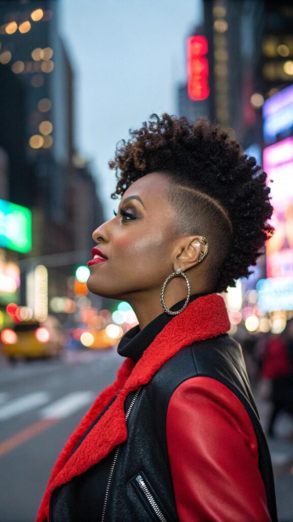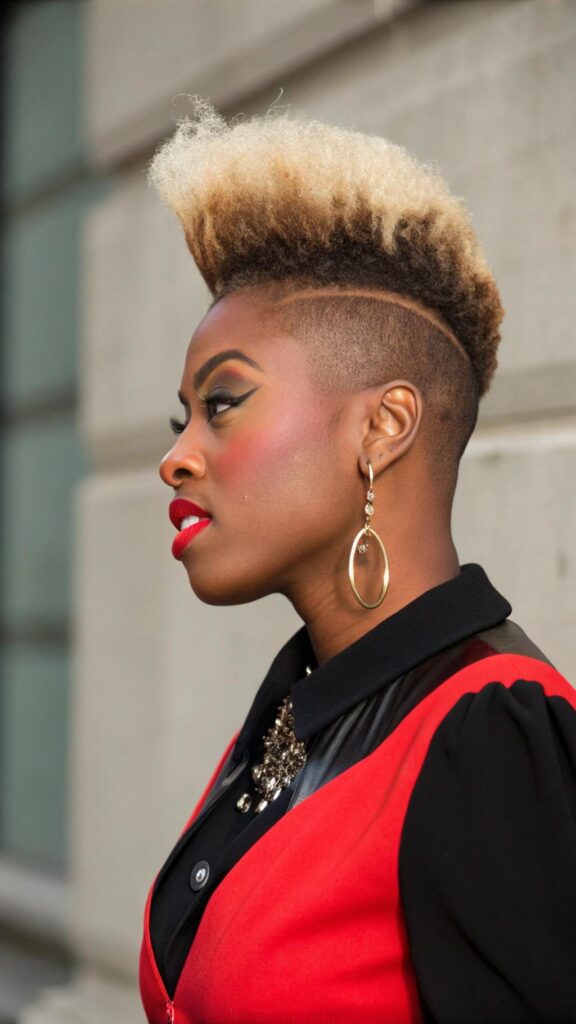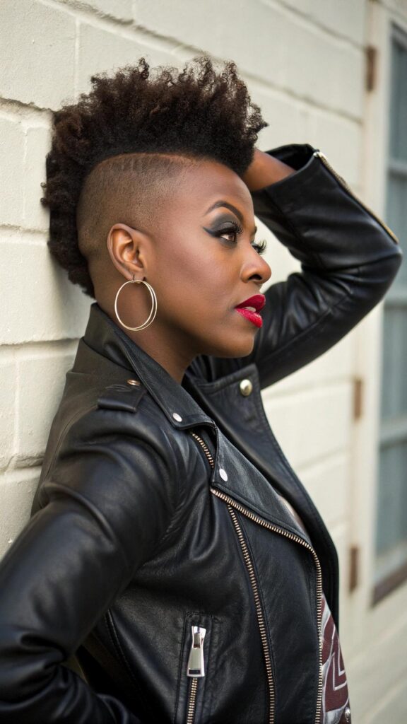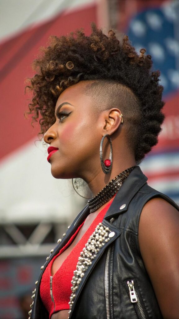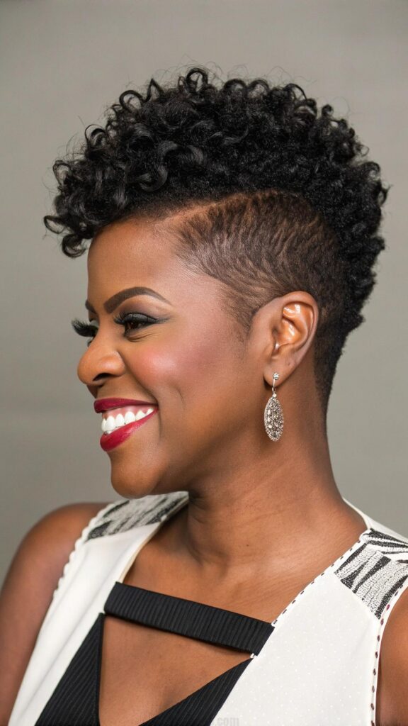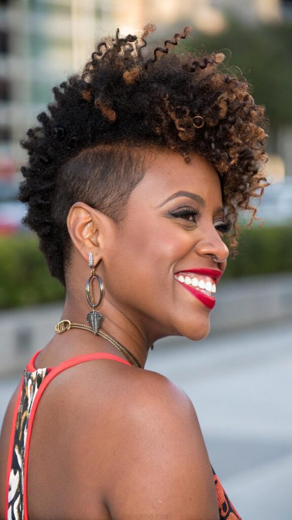 The curly mohawk is a bold and daring style for short natural hair. This look involves leaving the center section curly and voluminous while shaving or closely cutting the sides. It’s a statement-making hairstyle that’s perfect for women who love to stand out.