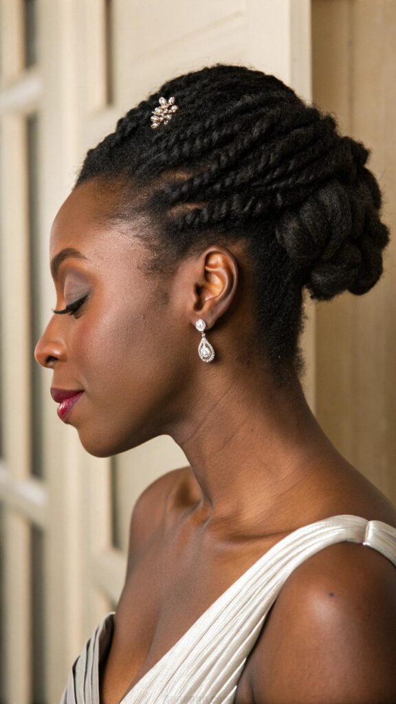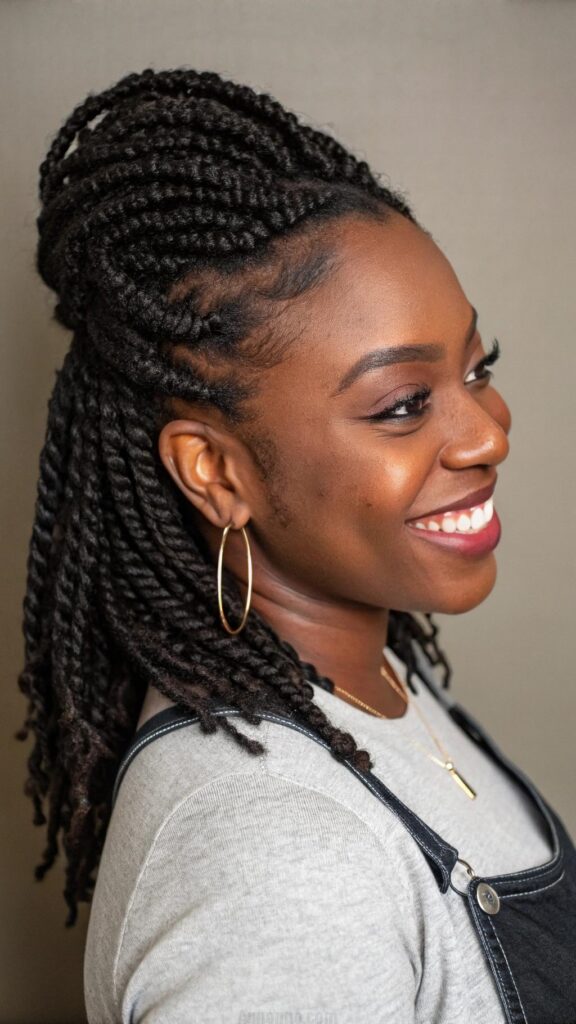 To create this style, use a twisting gel to define your twists and secure them with bobby pins. You can leave a few twists out for a softer, more romantic look. This hairstyle is both practical and beautiful, making it a favorite among many.