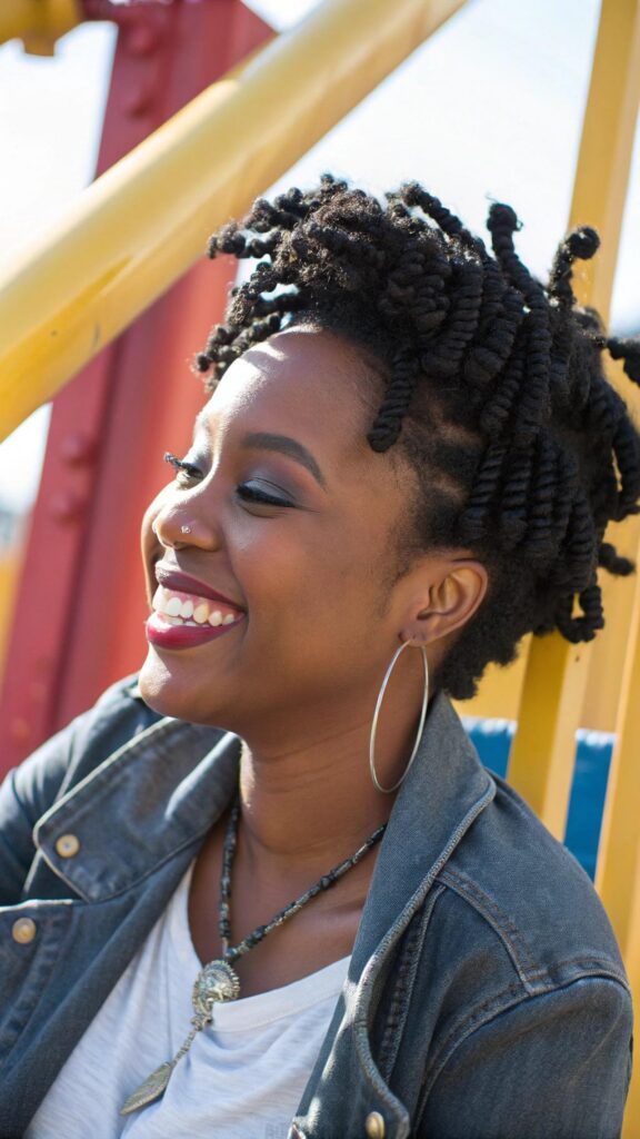 Two-strand twists are a versatile and protective style for short natural hair. This look involves twisting two sections of hair together to create defined twists. It’s a great way to showcase your natural texture while keeping your hair protected.