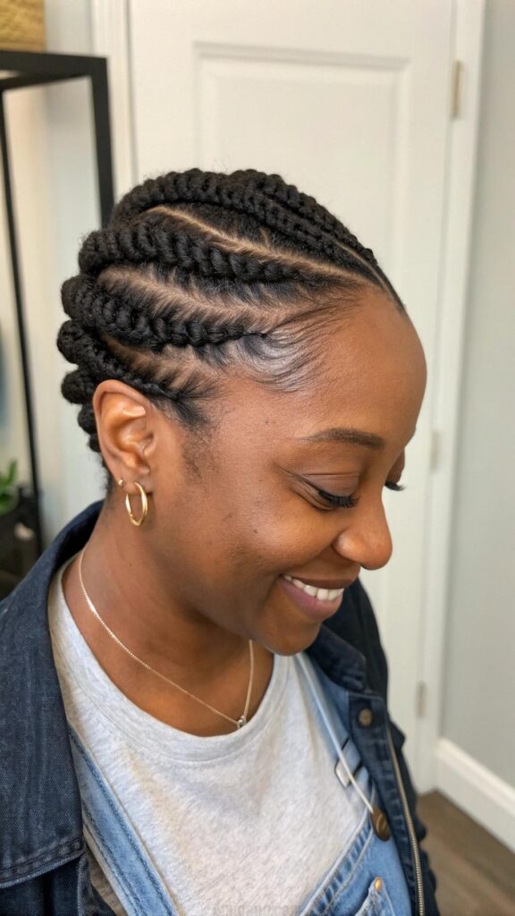 Flat twists are a protective and stylish way to wear short natural hair. This look involves twisting sections of hair close to the scalp for a sleek and polished appearance. It’s a great option for women who want a low-maintenance yet fashionable style.