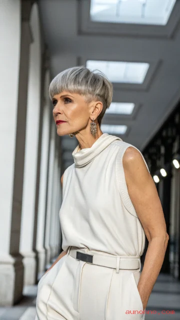 The silver fox pixie is all about embracing and enhancing natural gray or white hair. This style is usually a classic or textured pixie cut that is precision-cut to make the silver color look intentional and striking. It turns the natural aging process into a fashion statement.