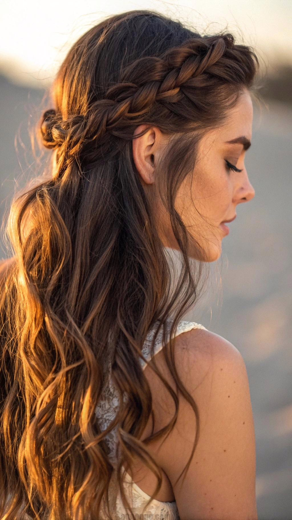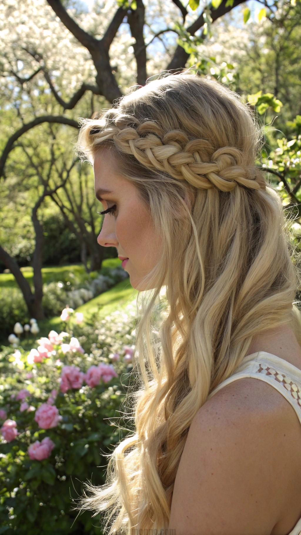 Leave the rest of your hair loose with soft waves. The braid acts like a natural headband. It’s perfect for vintage-inspired or floral prom dresses.