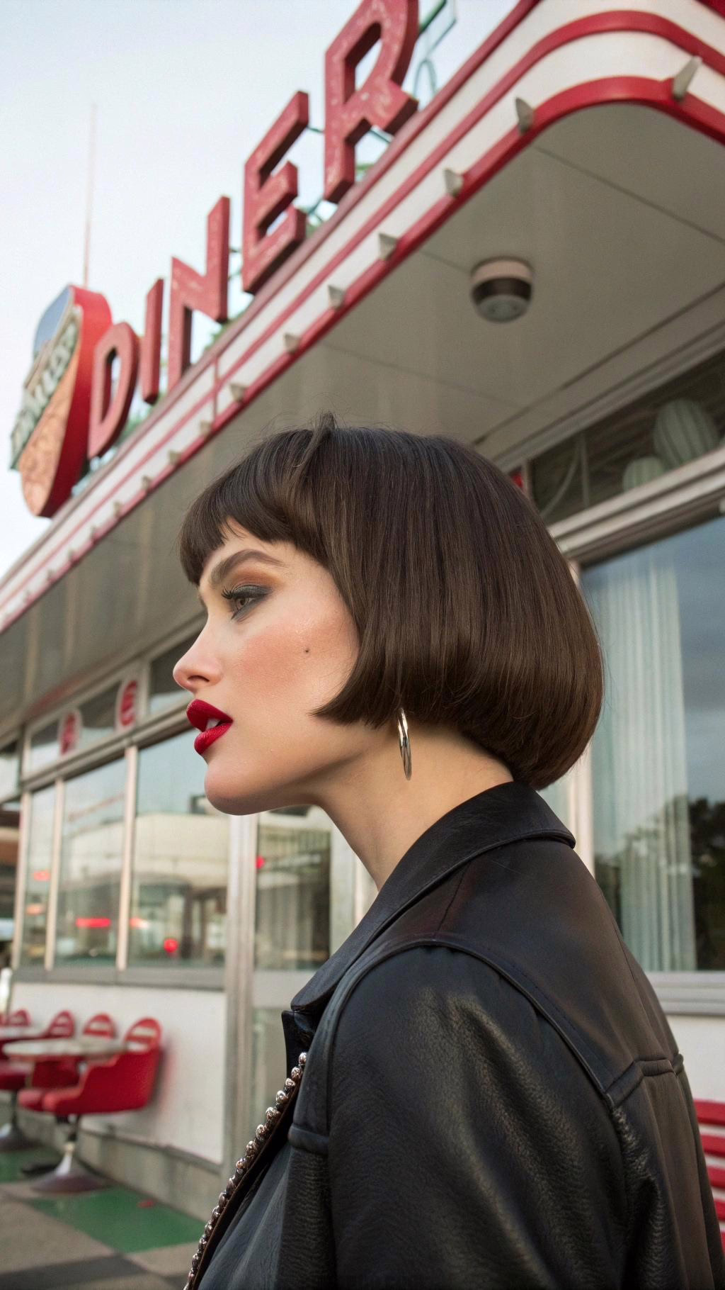 The severe look highlights your facial features. Add dramatic earrings for balance. This style works especially well with high-neck or halter dresses.