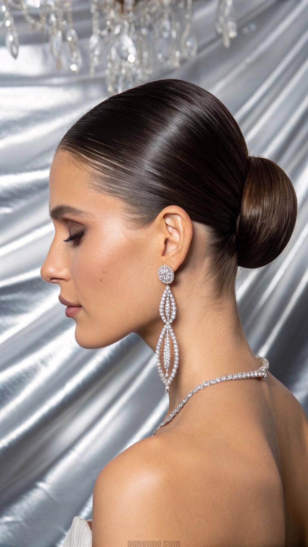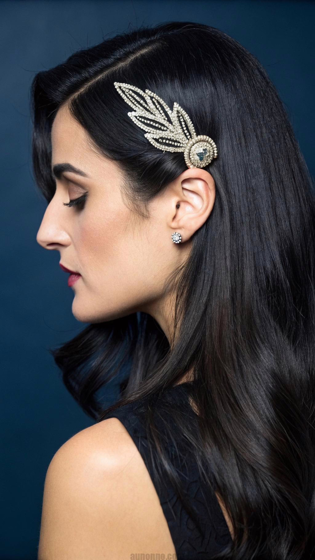 Add a deep side part for extra sophistication. Clip one side back with a crystal barrette for interest. The clean lines pair beautifully with ornate or minimalist dresses.