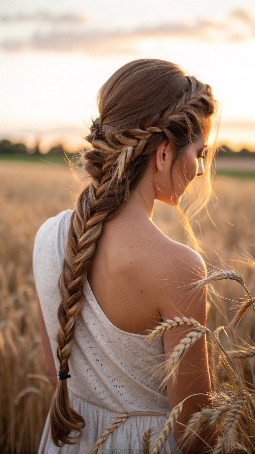 The result is a beautiful textured braid. Wear it over one shoulder for maximum impact. The bohemian vibe suits flowy, romantic dresses perfectly.