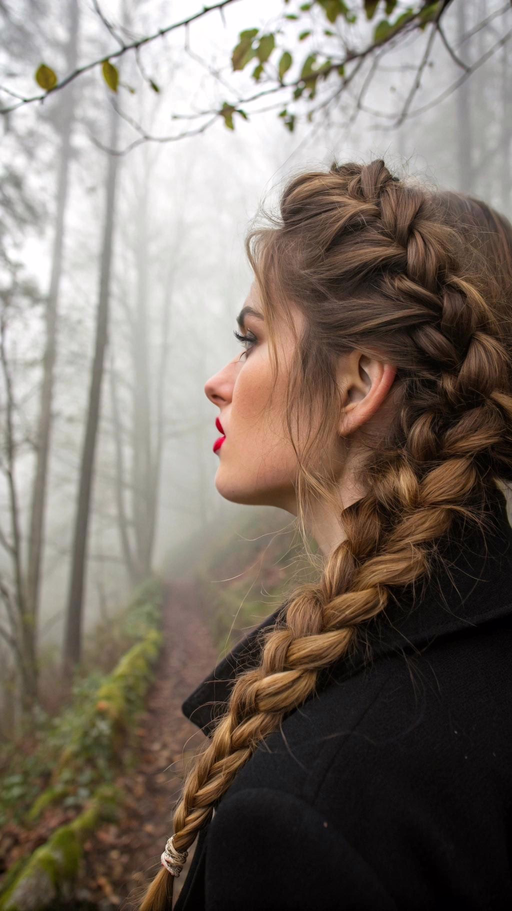 Tug gently on the braid sections to widen them. The lived-in look appears effortless. Pair with a bold lip color for contrast.