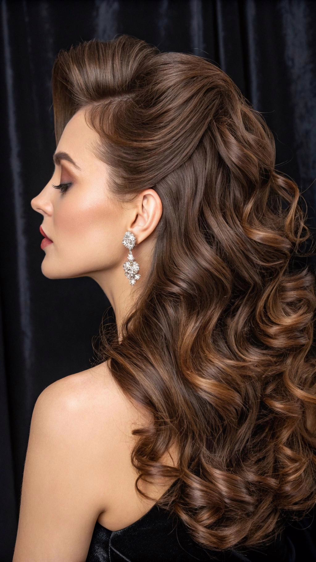 Soft waves at the ends add movement and dimension. Try a velvet scrunchie or jeweled hair tie for extra sparkle. It’s ideal when you want hair off your shoulders all night.