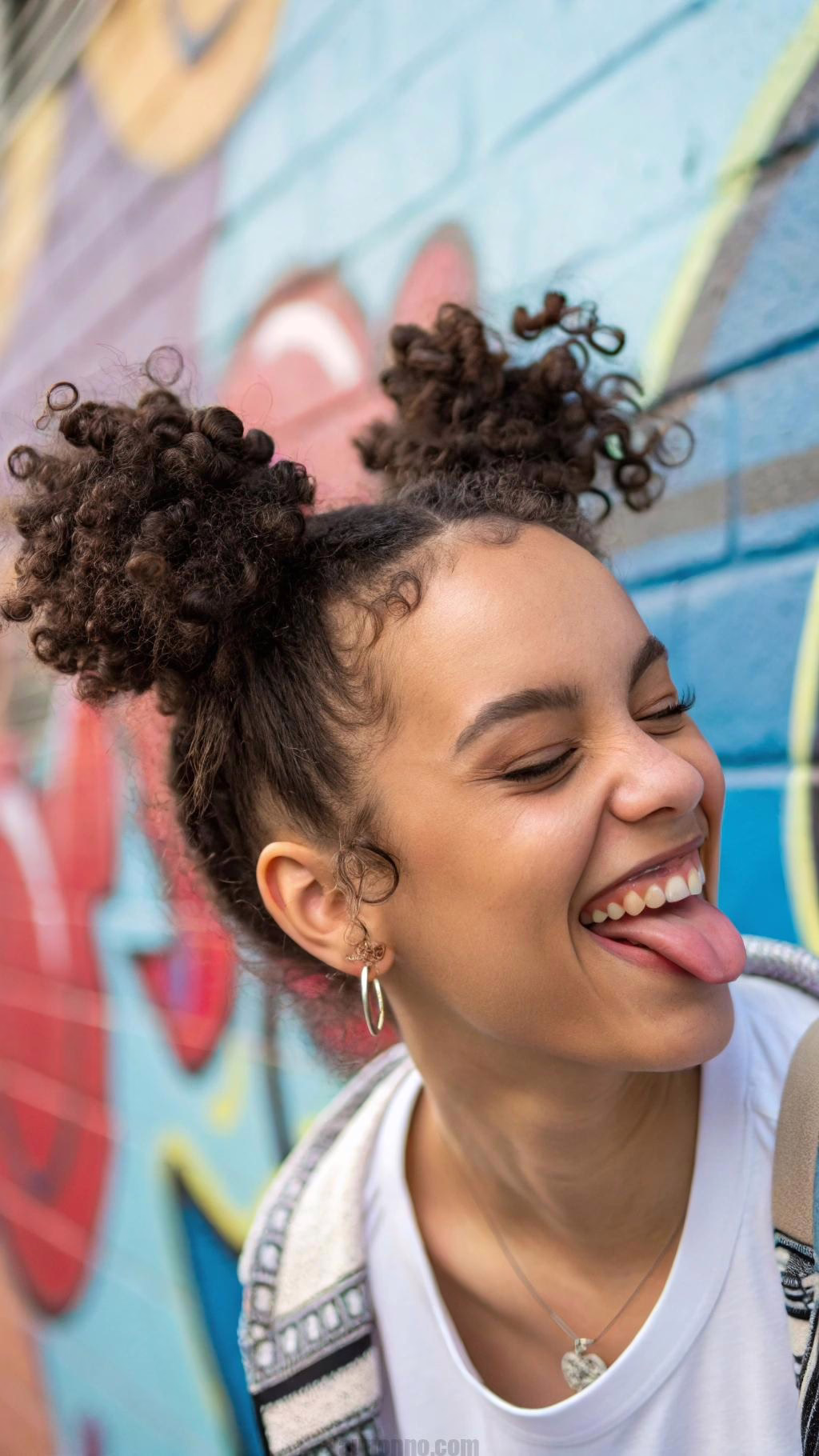 Playful yet put-together space buns. Part hair down the middle. Create two high ponytails and twist into buns.