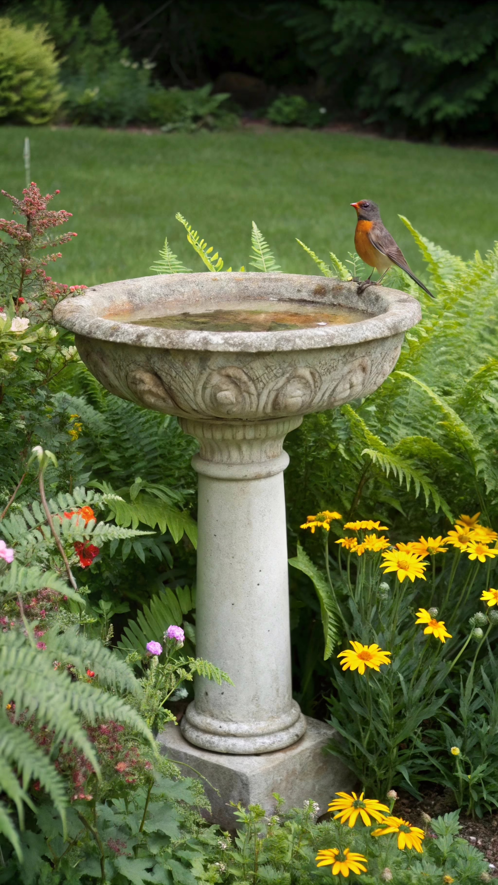 Choose bird baths made from weather-resistant materials like stone or ceramic. Keep the basin clean and filled with fresh water to attract more visitors. Surround it with native plants to create a mini habitat for local wildlife.
