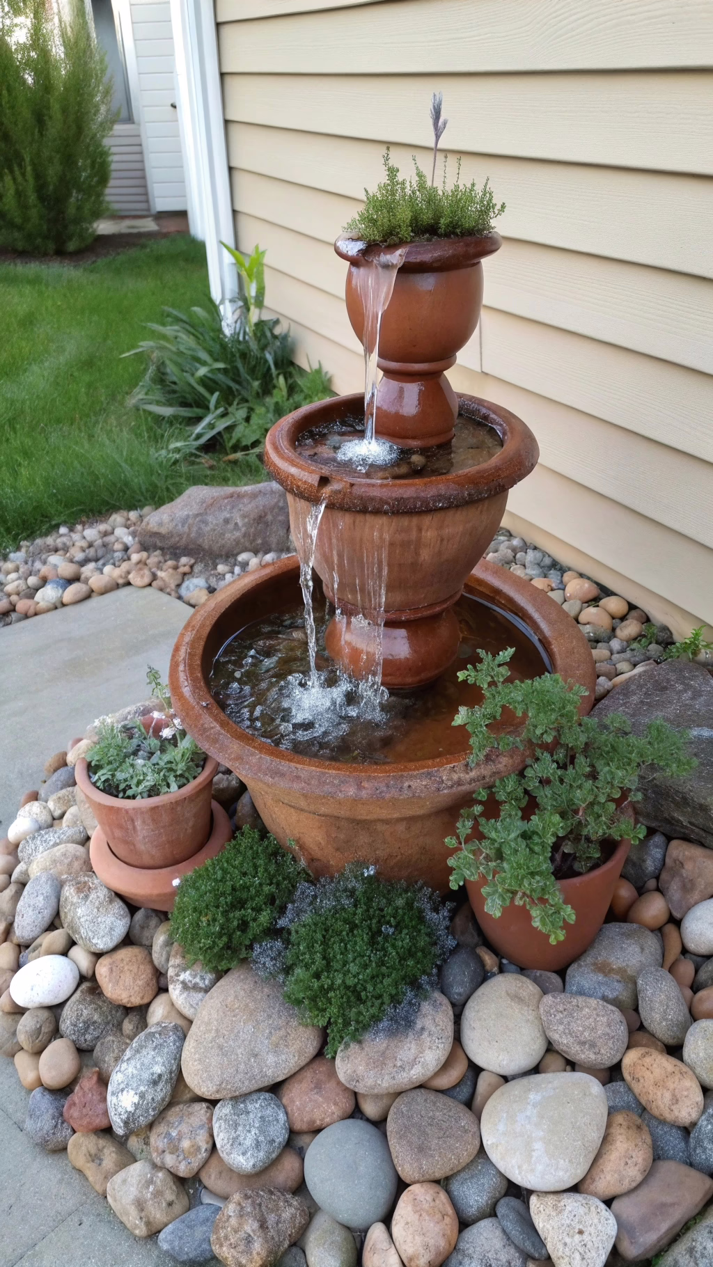 Small fountains are versatile additions to small front yard landscaping ideas. I place them near seating areas or pathways to serve as focal points. The gentle sound of flowing water creates a calming atmosphere.