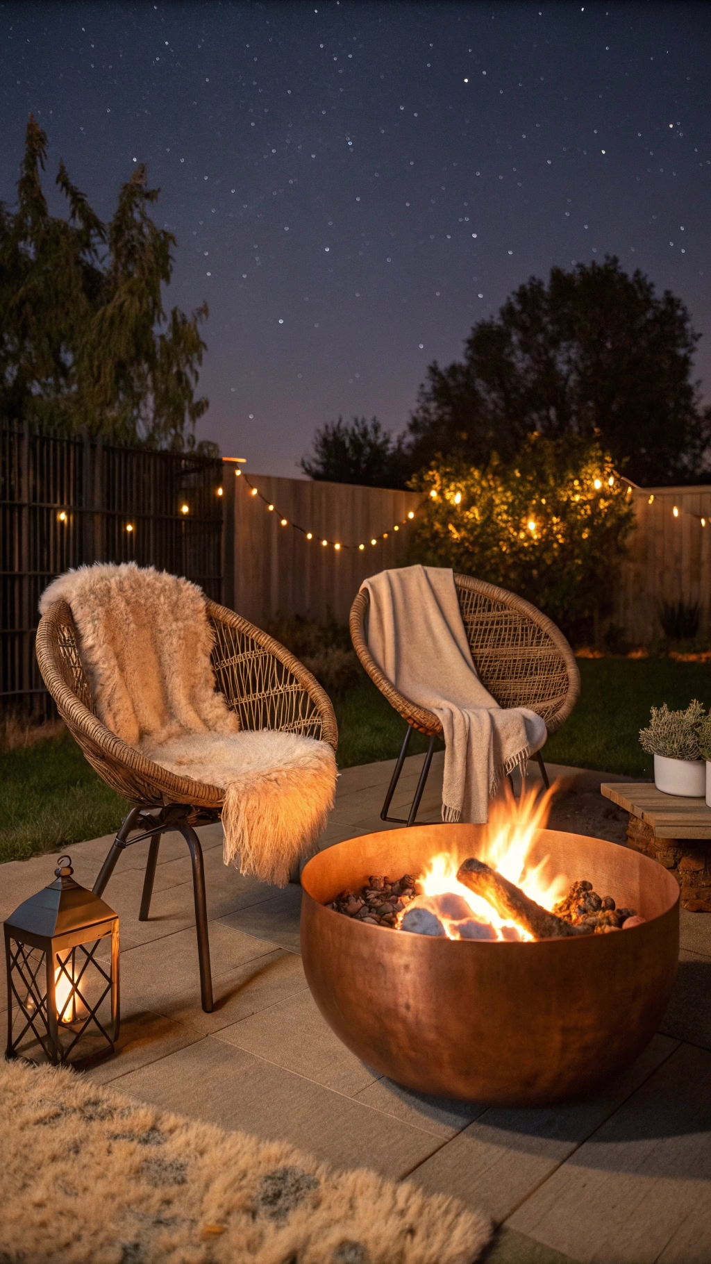Surround the fire pit with comfortable seating like Adirondack chairs or floor cushions. Add a few lanterns or candles nearby for extra glow. It’s a cozy way to extend your living space outdoors.