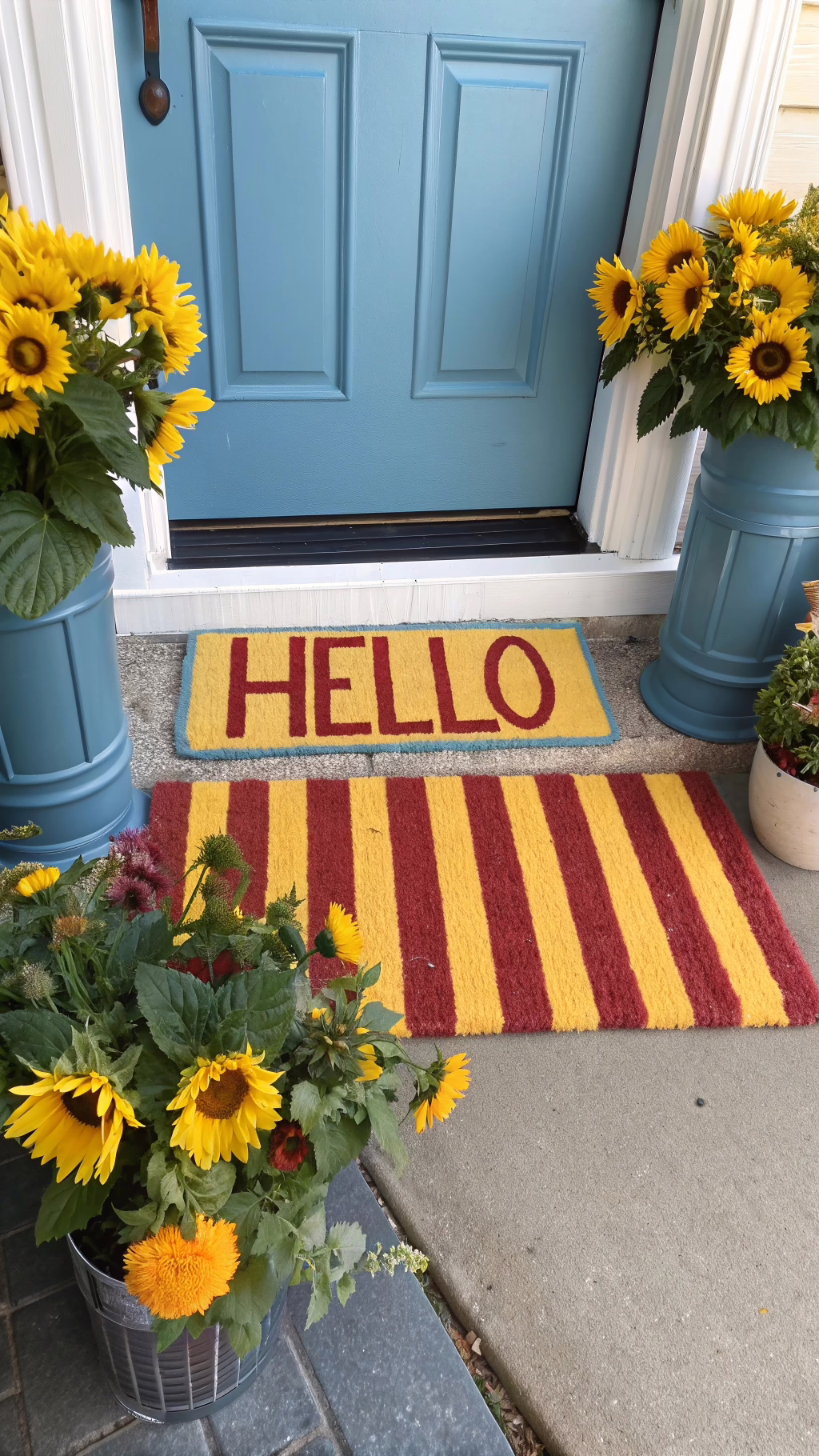A colorful welcome mat is an affordable way to elevate small front yard landscaping ideas. I pick mats with bold patterns or cheerful messages to greet visitors. They’re easy to swap out seasonally, keeping your entryway dynamic.