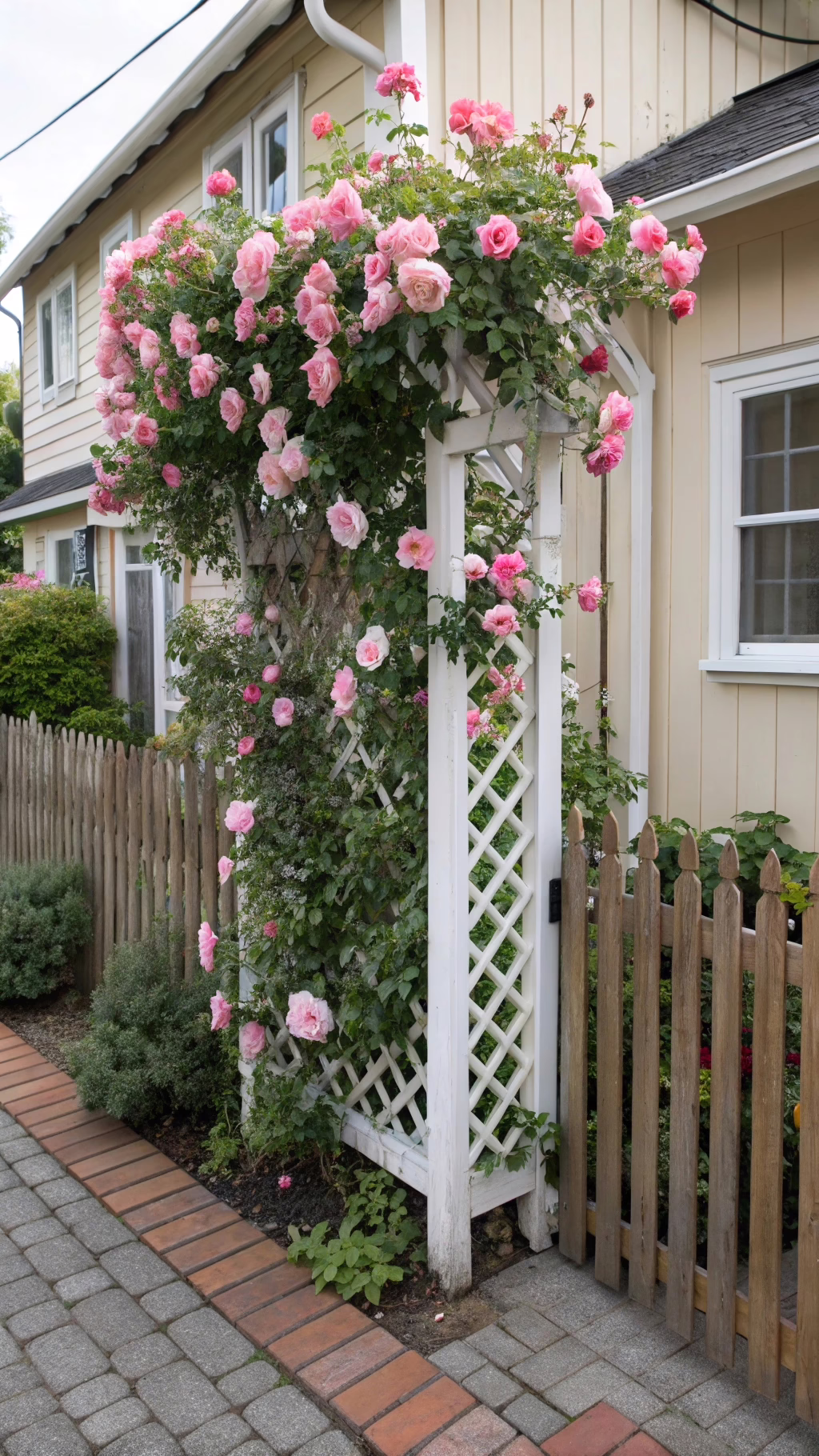 Choose trellises made from wood, metal, or vinyl depending on your home’s style. Freestanding ones work well if you need flexibility, while wall-mounted options save space. Paint or stain them to match your exterior for a seamless look.