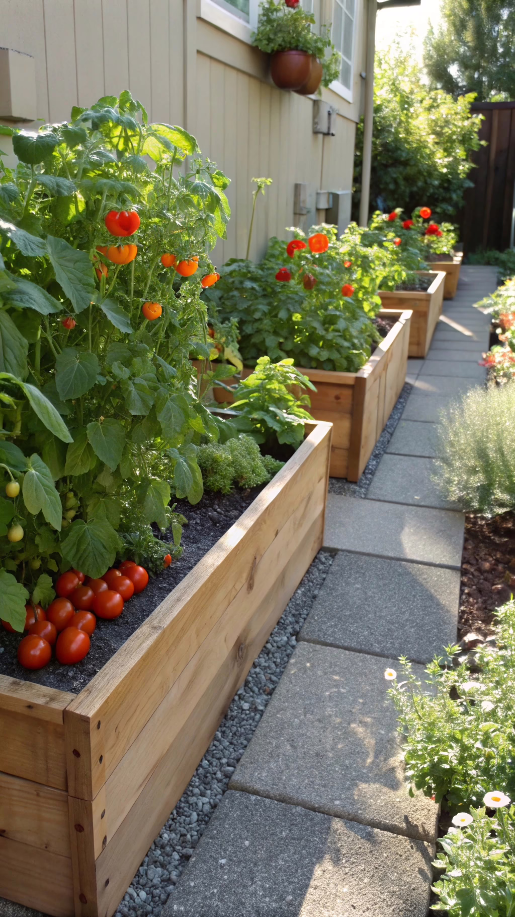 Elevating the planters makes gardening easier on your back and knees. Fill them with rich soil and choose plants that thrive together. Mixing edible and ornamental plants creates an appealing contrast. It’s practical and beautiful all in one.