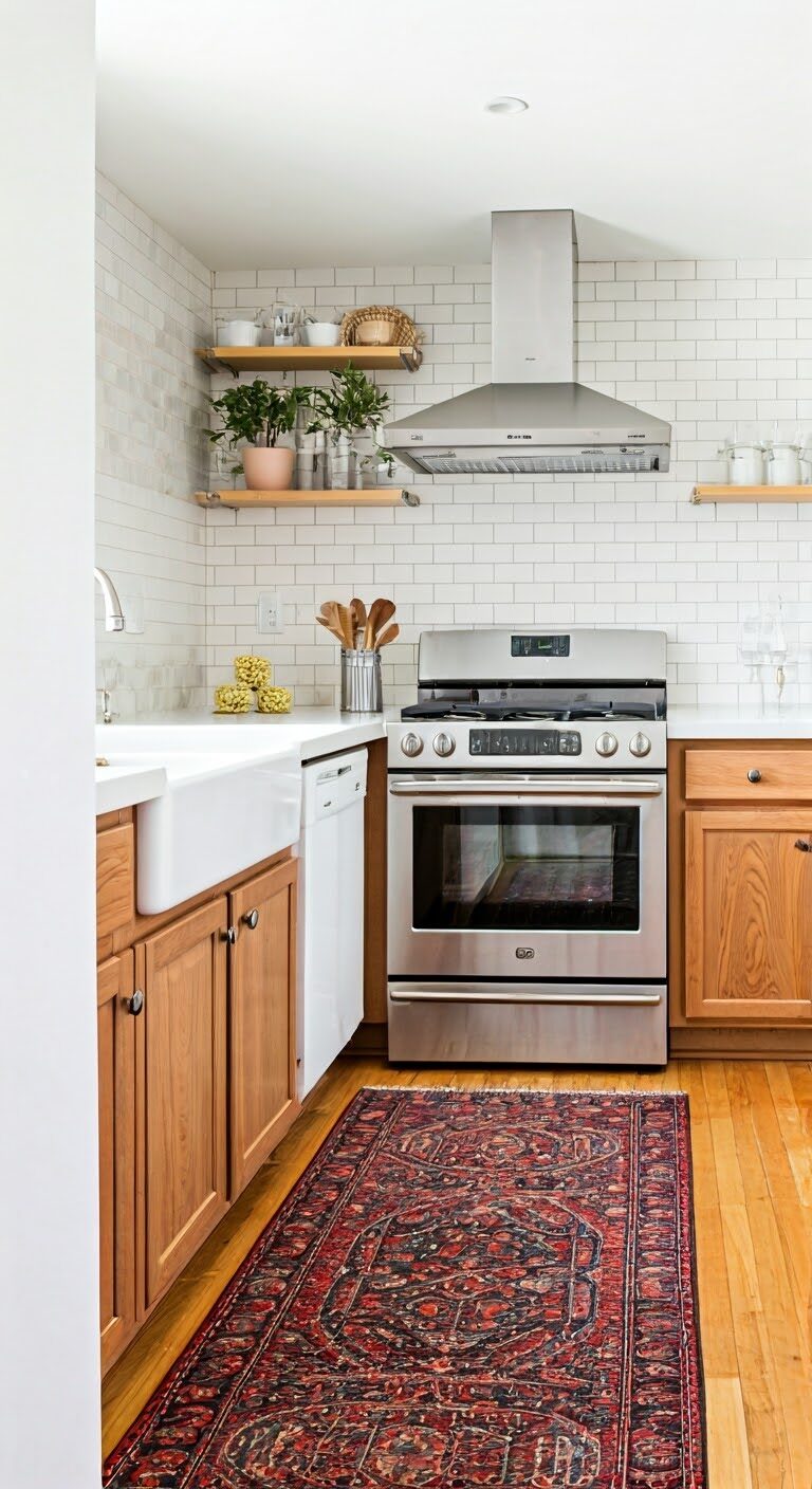 A statement rug is a great way to enhance small kitchen decor. Choose a bold pattern or color to add personality. Rugs also protect your floors and add comfort underfoot. Ensure the size fits the space without overwhelming it. A statement rug is a simple yet impactful small kitchen decor idea.
