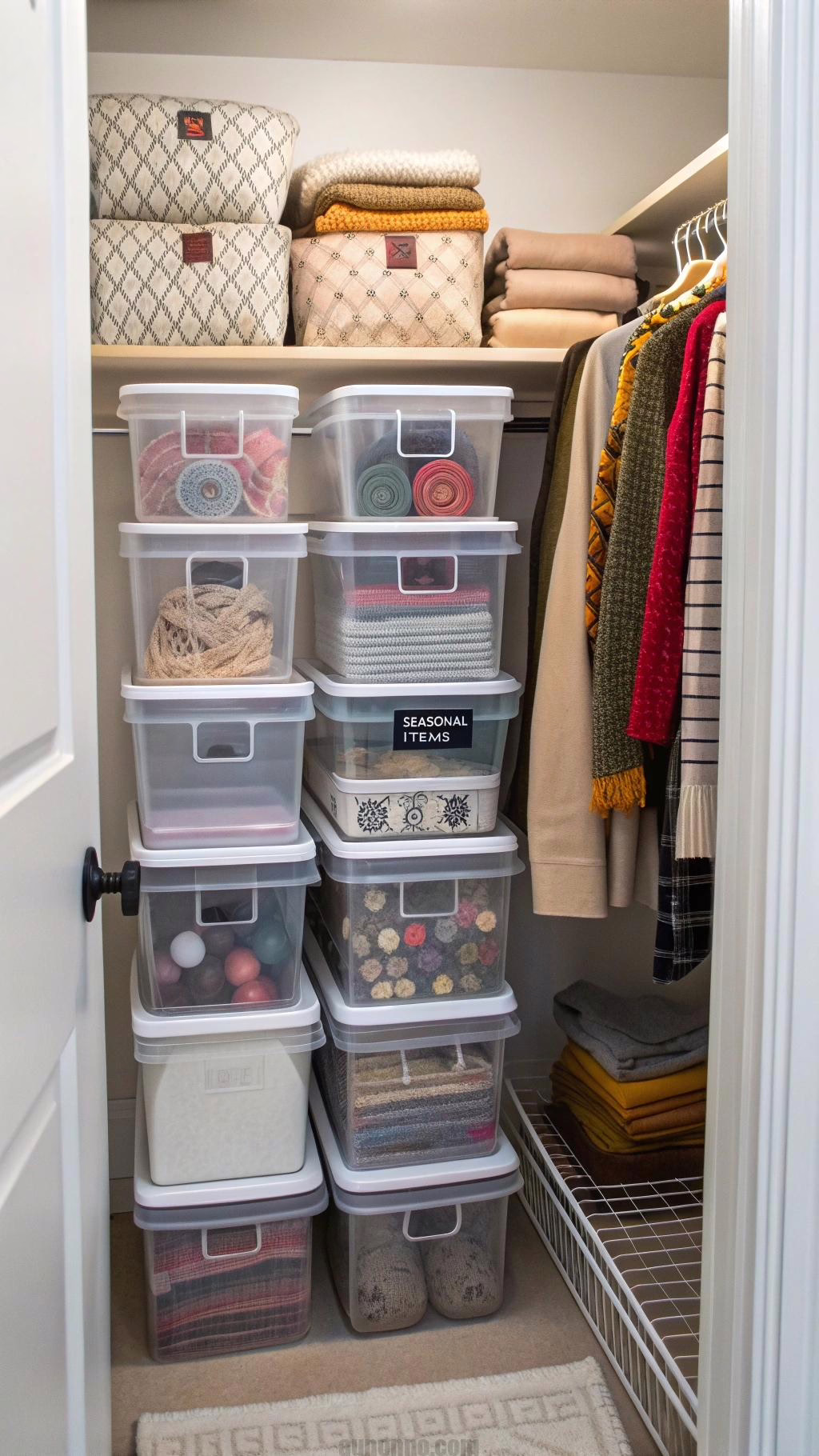 My labeled containers stack perfectly on upper shelves and maintain a clean, unified look in my small walk in closet. The visual clarity has eliminated my tendency to buy duplicates of items I couldn’t find, saving both money and precious storage space.