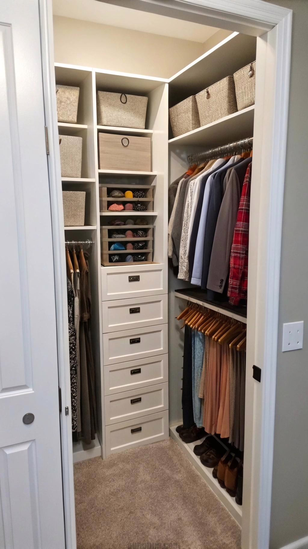I maximized every inch of my small walk in closet by installing drawer dividers that keep smaller items perfectly separated. These customizable organizers prevent my accessories and undergarments from becoming jumbled messes, saving valuable time during my morning routine.