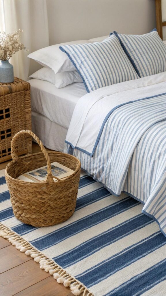 Striped bedding is a timeless choice for summer. Choose horizontal or vertical stripes in soft colors like blue and white or gray and white. This pattern adds visual interest without overwhelming the space.