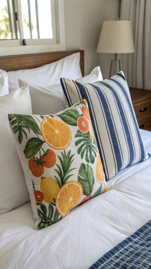 Mix and match different patterns for a playful look. Pair summer-themed pillows with solid-colored bedding for balance. It’s a quick and affordable way to refresh your space.