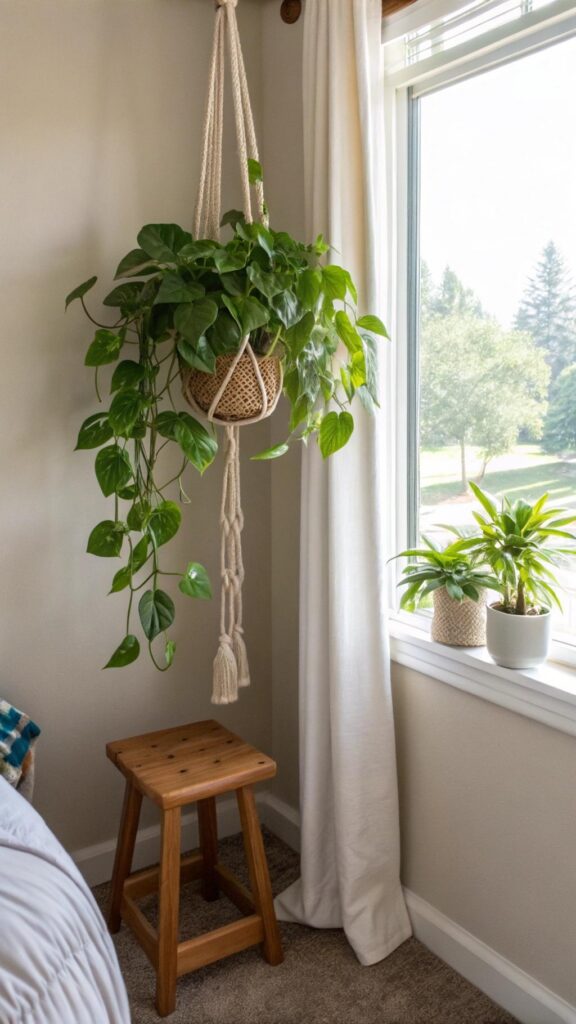 Use macrame plant hangers to add a bohemian touch. Place the plants near a window to ensure they get enough light. This decor idea is both stylish and beneficial for air quality.