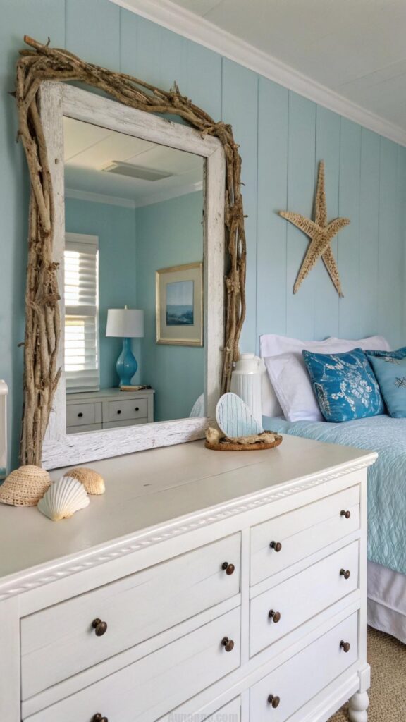 Bring the beach to your bedroom with ocean-inspired accents. Use decor like seashells, coral, or a driftwood mirror to create a coastal vibe. These elements add a touch of nature and relaxation.