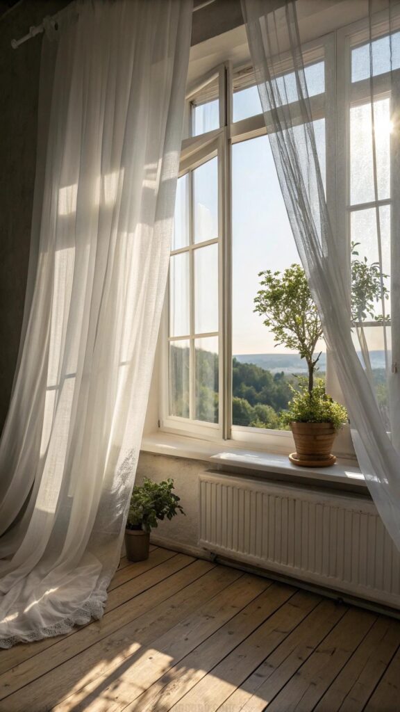 Pair your sheer curtains with a lightweight blind or shade for added privacy. This combination allows you to control the amount of light while maintaining a breezy, summer-ready look. It’s a simple change that makes a big impact.