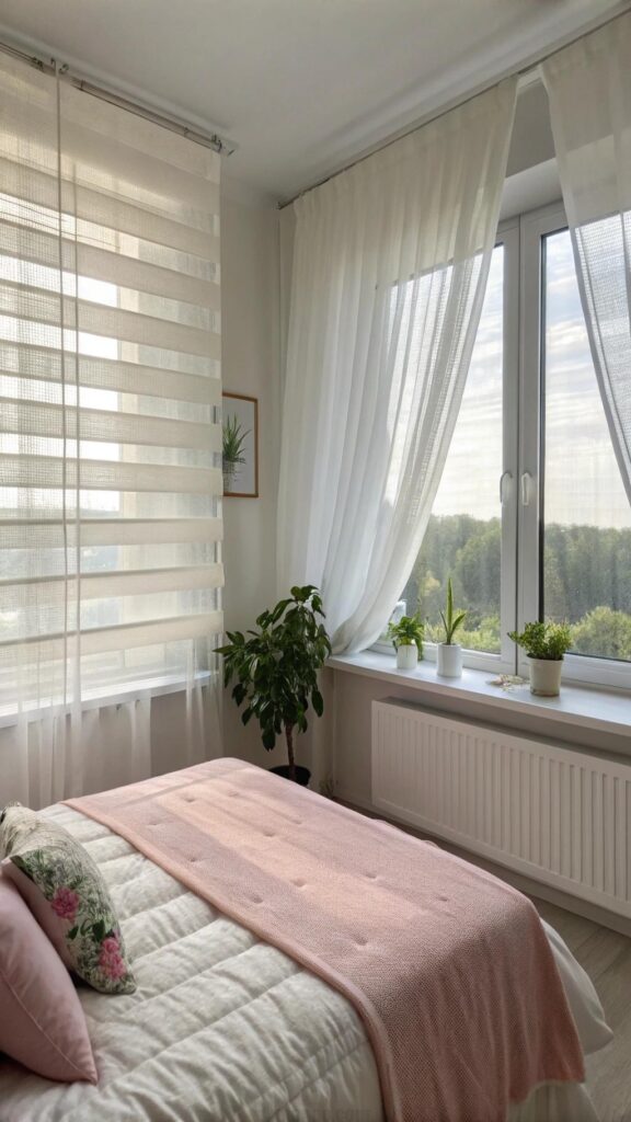 Pair light-filtering blinds with sheer curtains for a layered look. This combination works well in modern or minimalist bedrooms. It’s a practical and stylish choice for summer.