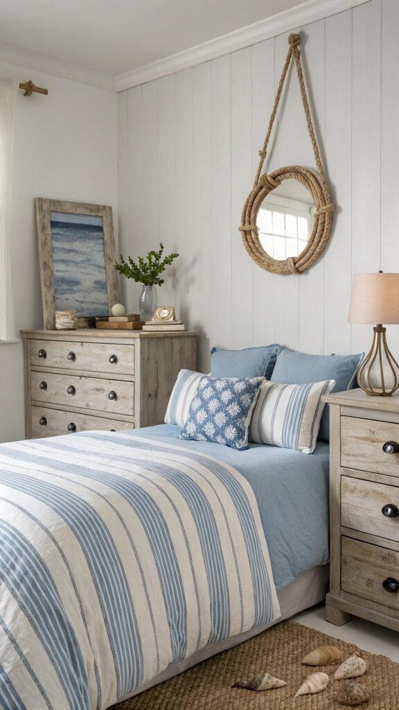 Create a coastal-inspired bedroom with shades of blue and white. Use striped bedding, nautical decor, and driftwood accents to evoke the feeling of a beach house. This theme is timeless and perfect for summer.