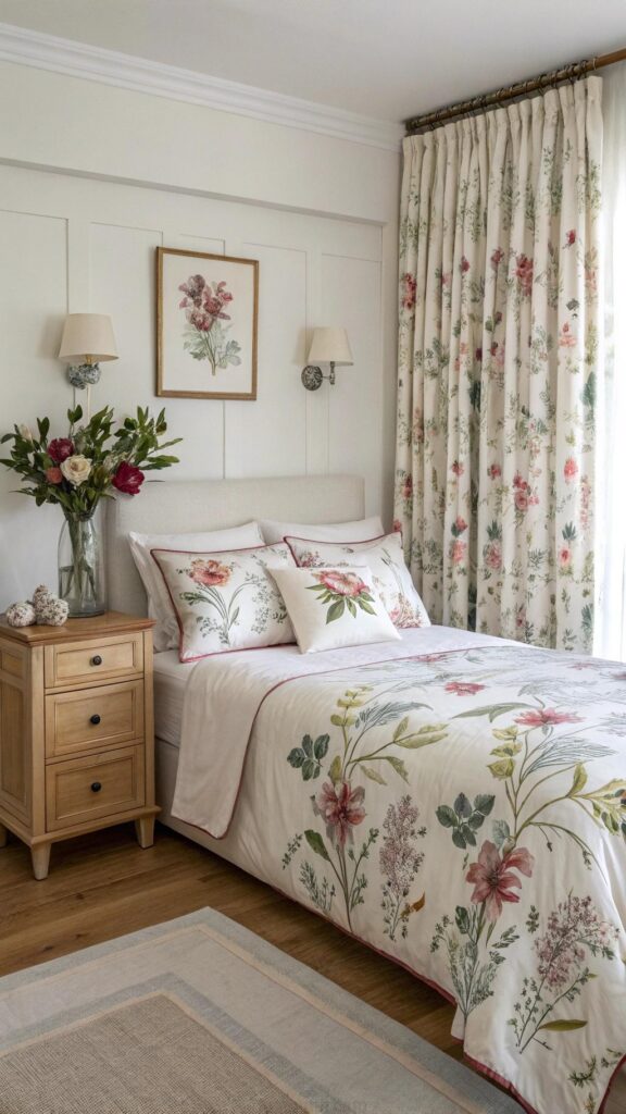 Mix and match different floral patterns for a layered look. Stick to a cohesive color palette to keep the design harmonious. Floral decor works well in both traditional and modern bedrooms.