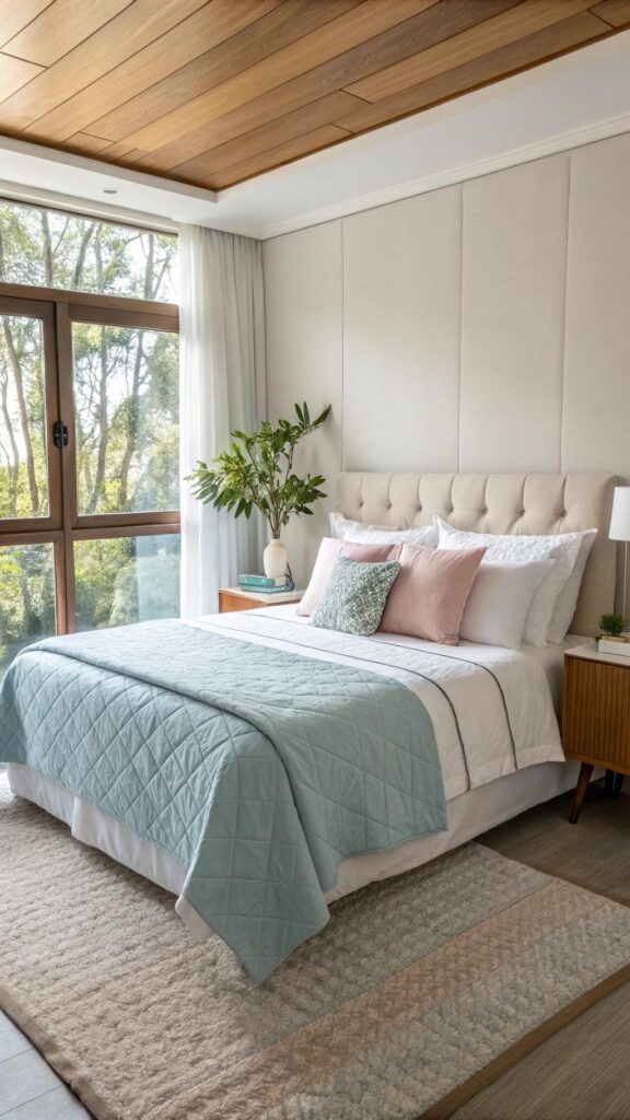 Pair your bedding with a lightweight quilt or coverlet in a neutral tone. Add a few throw pillows in playful patterns, such as stripes or florals, to complete the look. This simple change can make your bedroom feel instantly brighter and more inviting.