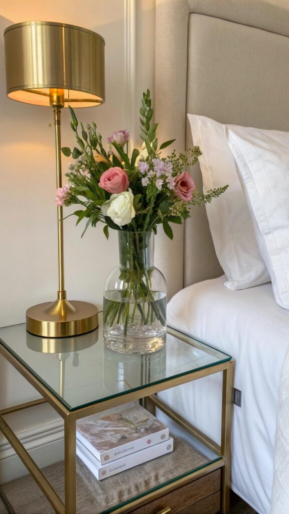 Pair glass decor with metallic accents for a touch of elegance. Glass works well in modern or minimalist bedrooms. It’s a simple way to create a summer-ready look.