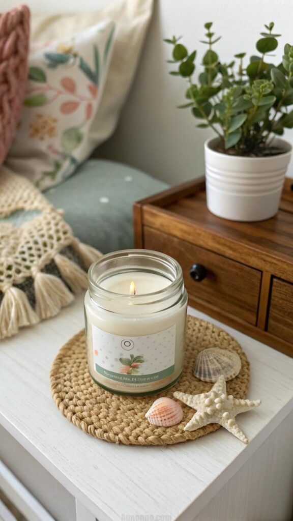 Place a scented candle on your nightstand or dresser for a subtle touch. Pair it with matching decor, like a coconut-shaped candle holder. Summer scents add an extra layer of sensory appeal.
