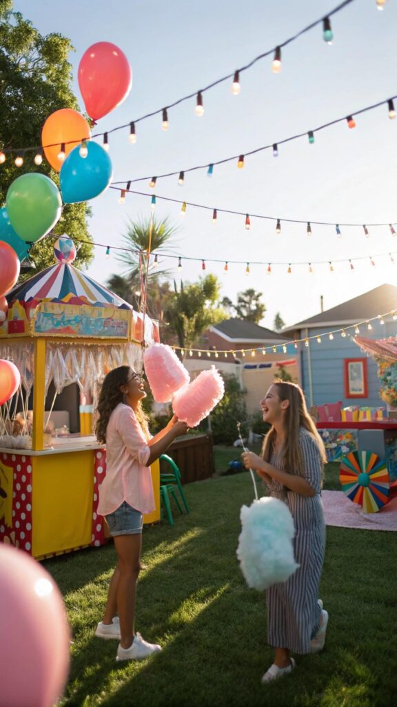 Serve carnival treats like popcorn, cotton candy, and hot dogs. Add colorful decorations and music to complete the theme. This idea is perfect for a lively and entertaining celebration.