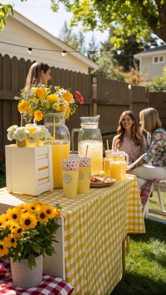 Create a DIY lemonade stand for a nostalgic and refreshing summer birthday party. Set up a cute stand with pitchers of homemade lemonade and various flavors like strawberry or mint. Add cookies or cupcakes for a sweet touch.