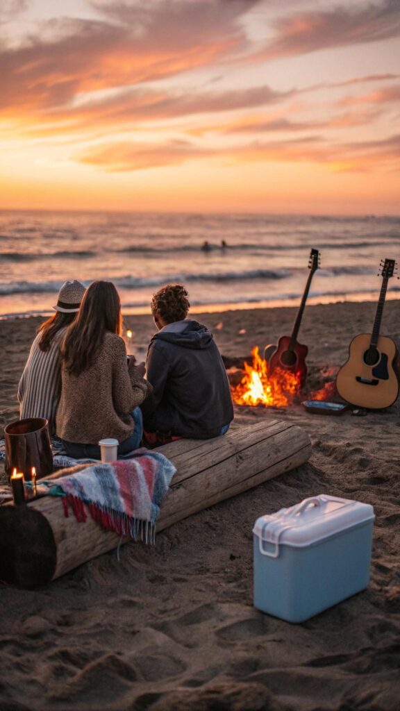 Play acoustic music or bring a guitar for sing-alongs. Provide glow sticks or lanterns for added fun as the sun sets. Make sure to check local regulations for beach fires and clean up afterward.