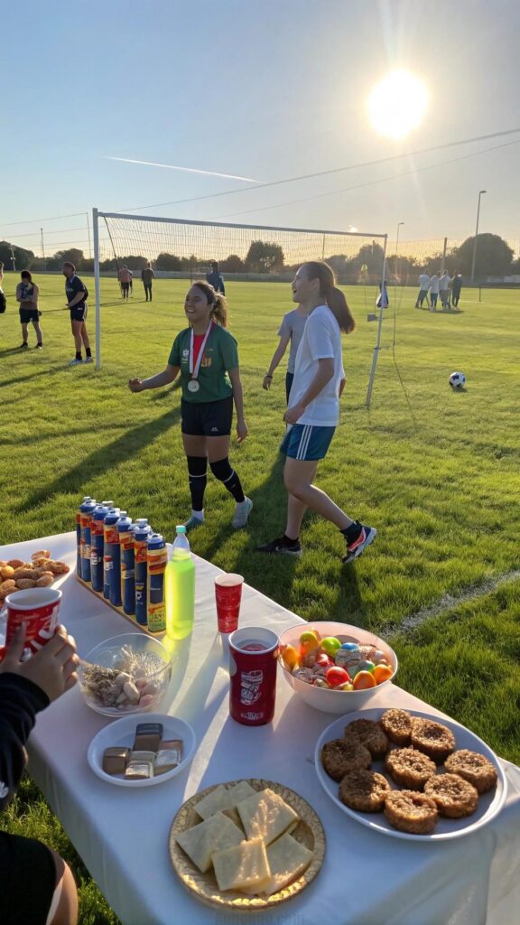 Serve sports-themed snacks like hot dogs, nachos, and energy drinks. Keep a cooler filled with water bottles to keep everyone hydrated. This idea is perfect for sports enthusiasts.