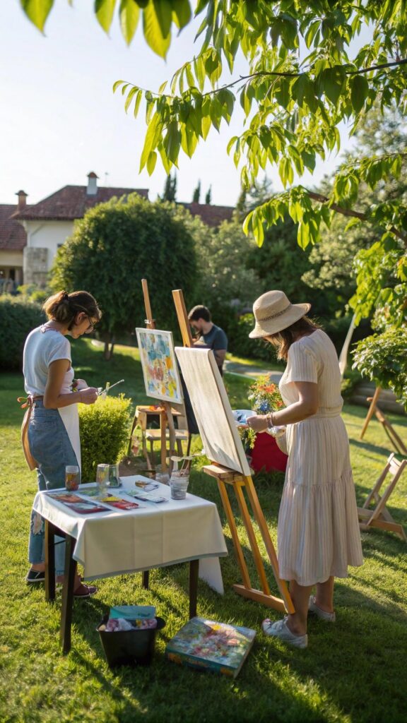 Display the finished artwork and let guests take their creations home. Serve light snacks and drinks to keep everyone energized. This idea is perfect for art lovers of all ages.