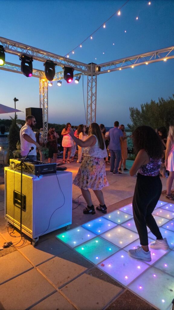 Serve refreshing drinks and finger foods to keep the energy high. This idea is perfect for a fun and energetic gathering. Your guests will love dancing under the stars.