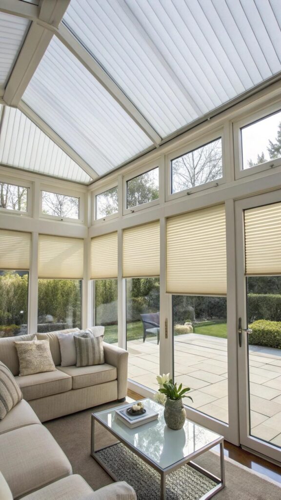 While natural light is a sunroom’s main appeal, too much can be overwhelming, especially during peak sun hours. Installing blinds, shades, or even smart glass can provide essential light control. These options allow you to adjust the amount of sunlight entering the room, preventing glare and overheating.