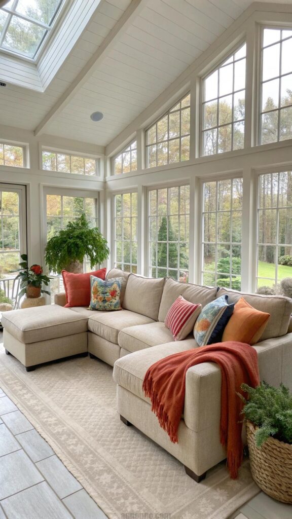 Add plenty of throw pillows and blankets to enhance comfort and add pops of color or texture. These elements make the space feel more inviting and lived-in. Your sunroom will become a favorite spot for lounging and unwinding.